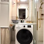 Cozy Apartment With A Terrace In The Center Of Prague har vardagsrum med tvättmaskin som garanterar en bekväm vistelse. Boendet erbjuder gästerna torktumlare, badlakan och handdukar i badrummet. Dessutom finns det en separat toalett och en dusch.